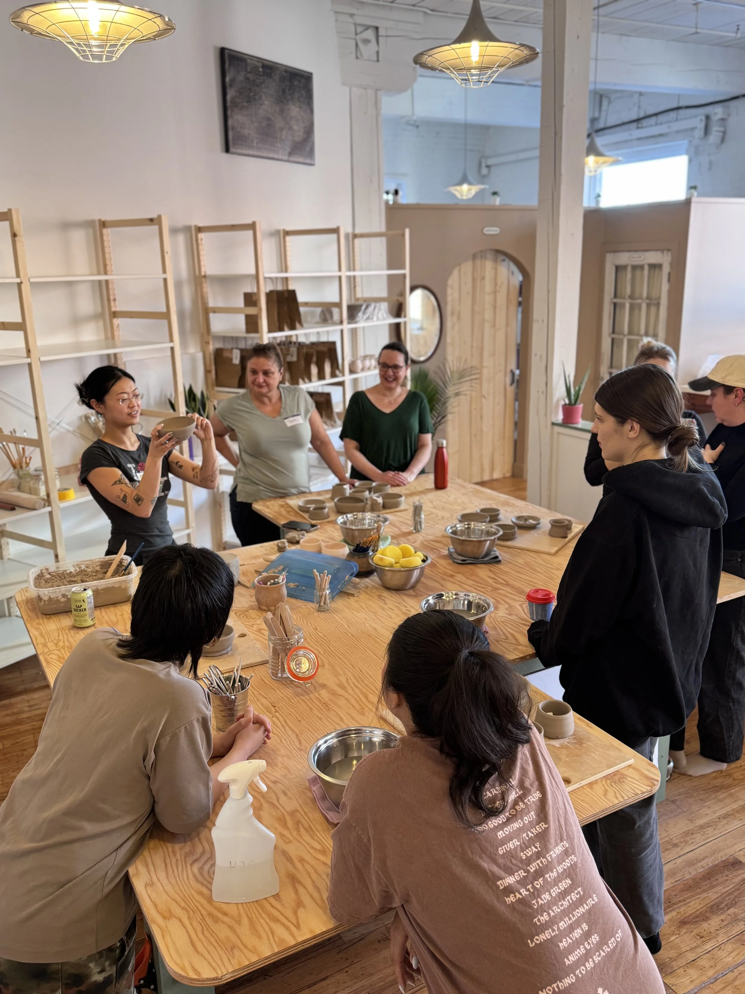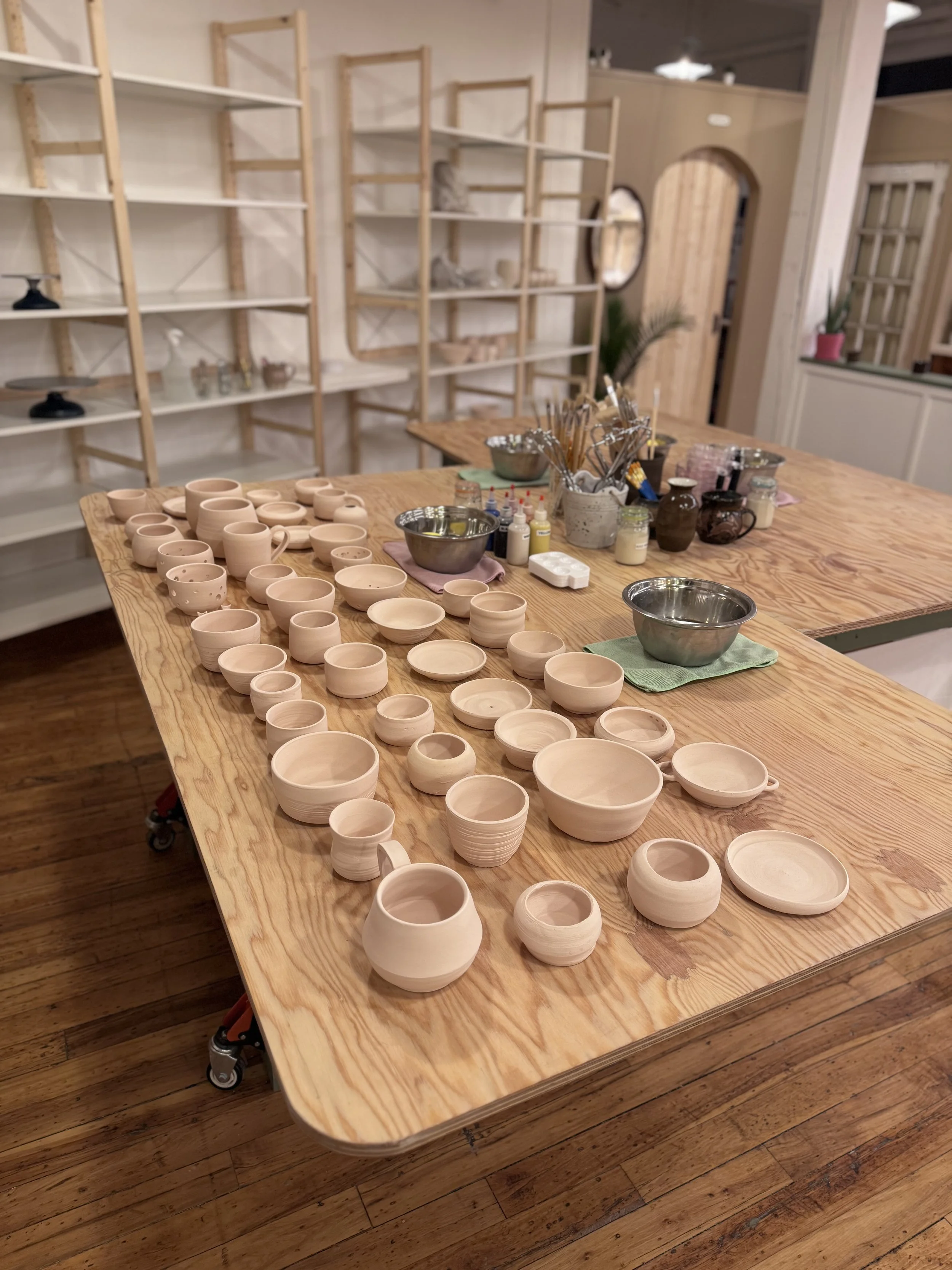 We provide unlimited clay throughout your session, after which you can select up to 6 pieces for firing. Additional pieces can be added for a fee.